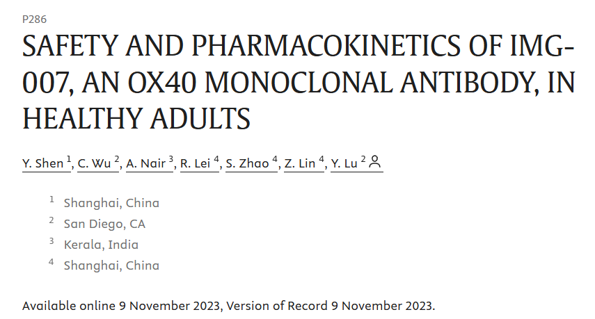 论断单次剂量高达600 mg的IMG-007在健康参与者中耐受精熟,并在高剂量下弘扬出延伸的半衰期。IMG-007代表了一种搭救AD过甚他T细胞介导的疾病的独有搭救候选药物。