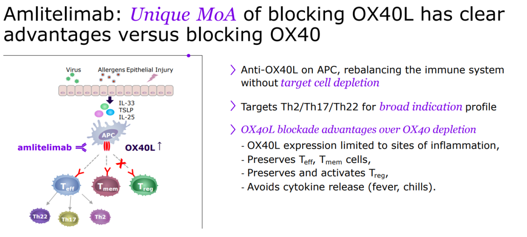 OX40L抗体amlitelimab并不会出现系统性激活T细胞的反作用,合座安全性跟劝慰剂特殊。要远远优于OX40抗体Rocatinlimab。