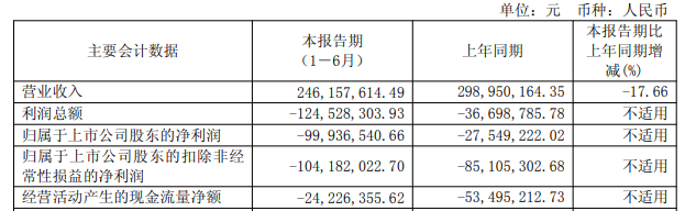 2025年上半年,公司交易收入2.46亿元,同比减少17.66%;包摄于上市公司激动的净利润-9993.65万元,上年同时为-2754.92万元;包摄于上市公司激动的扣除非频繁性损益的净利润-1.04亿元,上年同时为-8510.53万元;方针举止产生的现款流量净额-2422.64万元,上年同时为-5349.52万元。